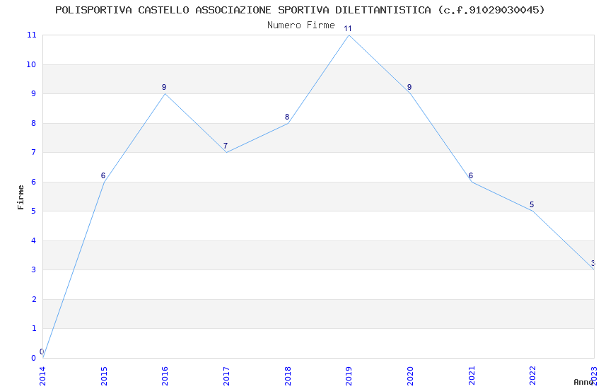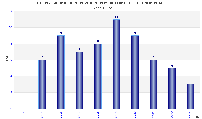 | Anno | Firme | Importi | Media | Naz. | Reg. | Prov. | Comu. |