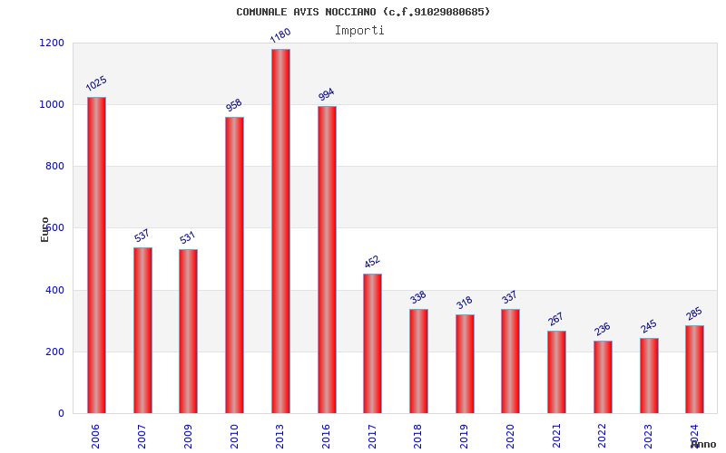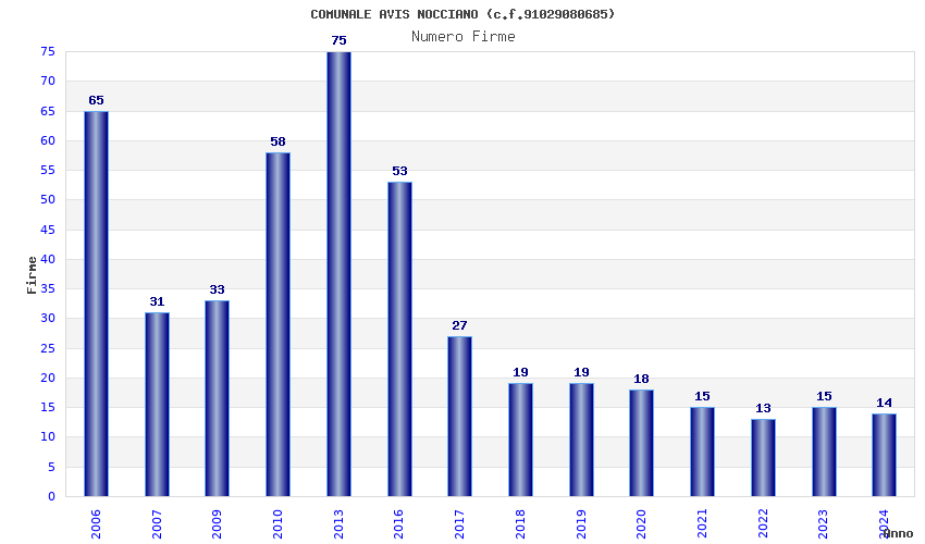 | Anno | Firme | Importi | Media | Naz. | Reg. | Prov. | Comu. |