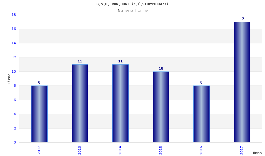 | Anno | Firme | Importi | Media | Naz. | Reg. | Prov. | Comu. |