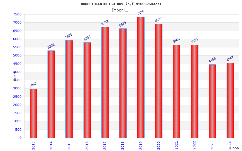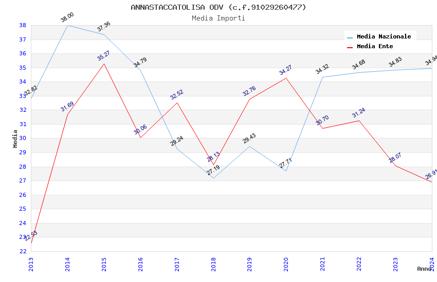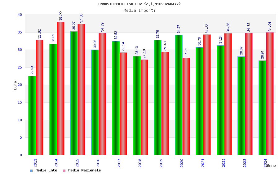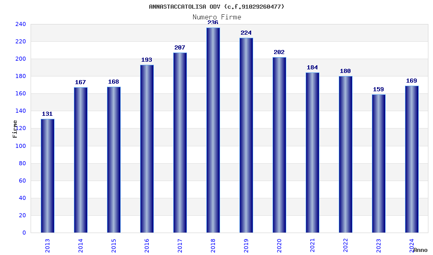 | Anno | Firme | Importi | Media | Naz. | Reg. | Prov. | Comu. |