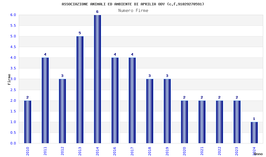 | Anno | Firme | Importi | Media | Naz. | Reg. | Prov. | Comu. |
