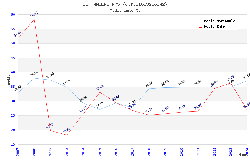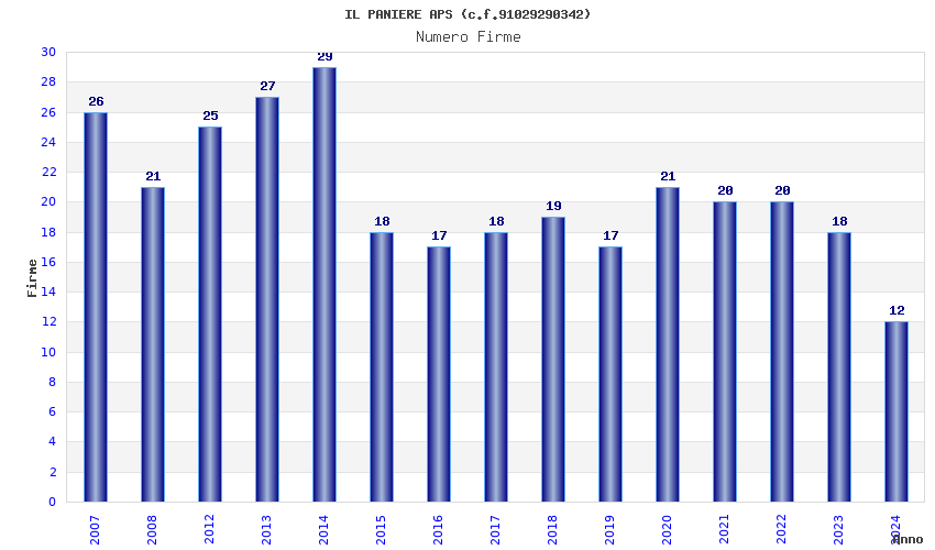 | Anno | Firme | Importi | Media | Naz. | Reg. | Prov. | Comu. |