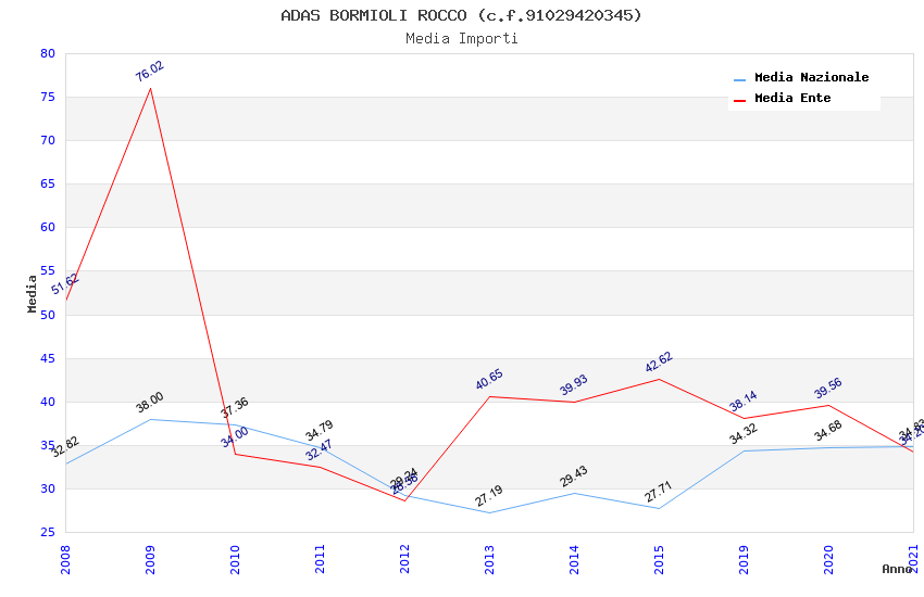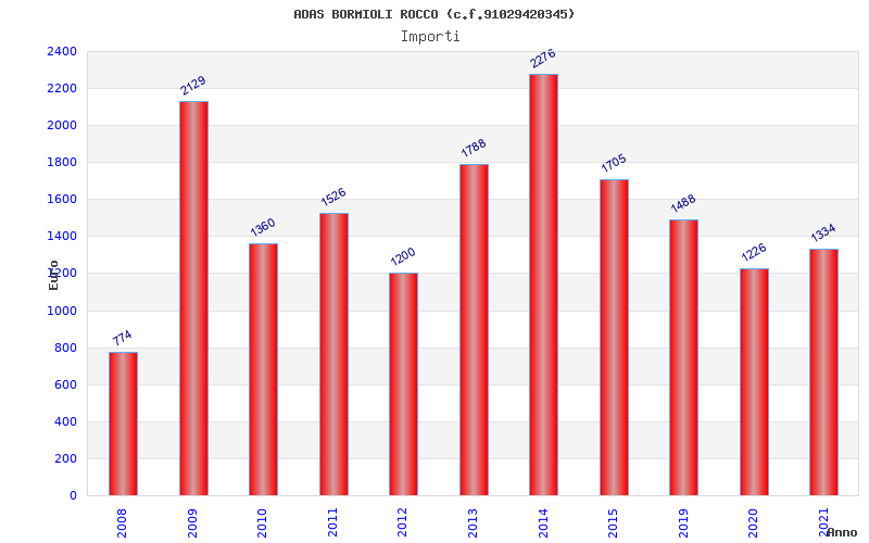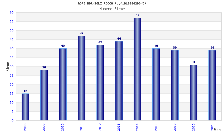 | Anno | Firme | Importi | Media | Naz. | Reg. | Prov. | Comu. |