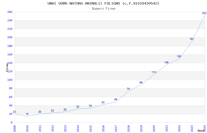 Anno Firme Importi Media Naz. Reg. Prov. Comu.