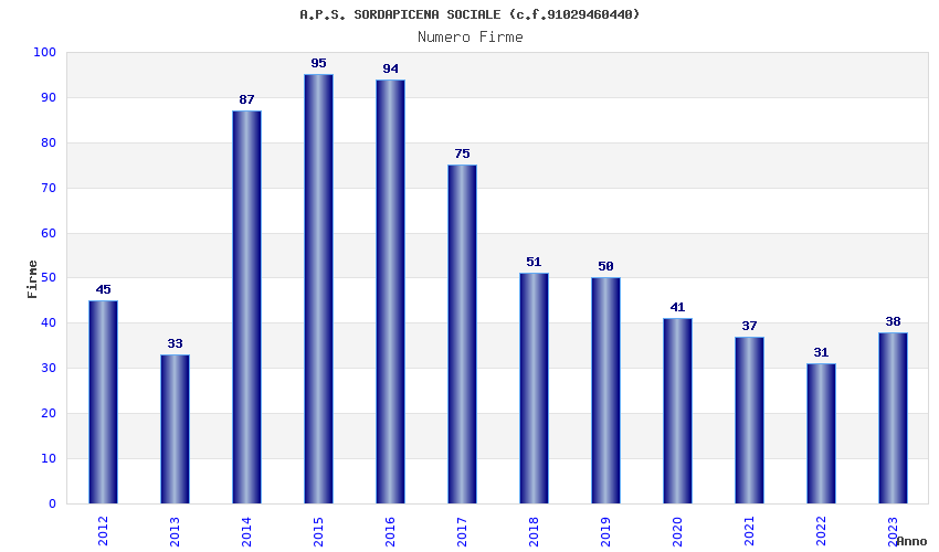 | Anno | Firme | Importi | Media | Naz. | Reg. | Prov. | Comu. |