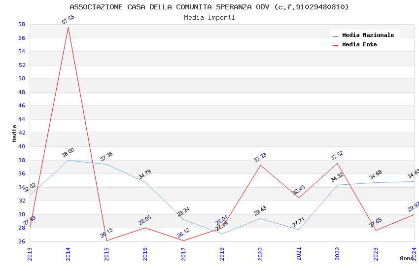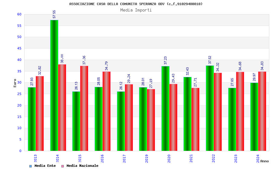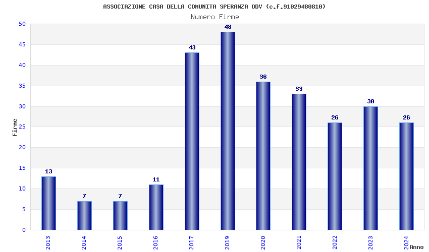 | Anno | Firme | Importi | Media | Naz. | Reg. | Prov. | Comu. |