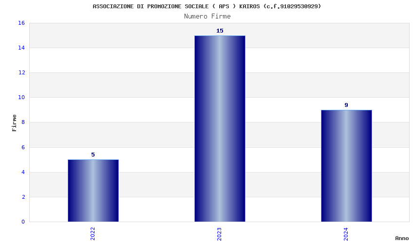 | Anno | Firme | Importi | Media | Naz. | Reg. | Prov. | Comu. |
