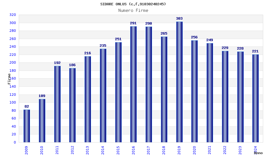 | Anno | Firme | Importi | Media | Naz. | Reg. | Prov. | Comu. |