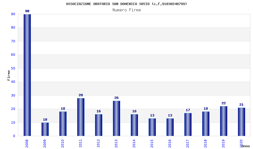 | Anno | Firme | Importi | Media | Naz. | Reg. | Prov. | Comu. |