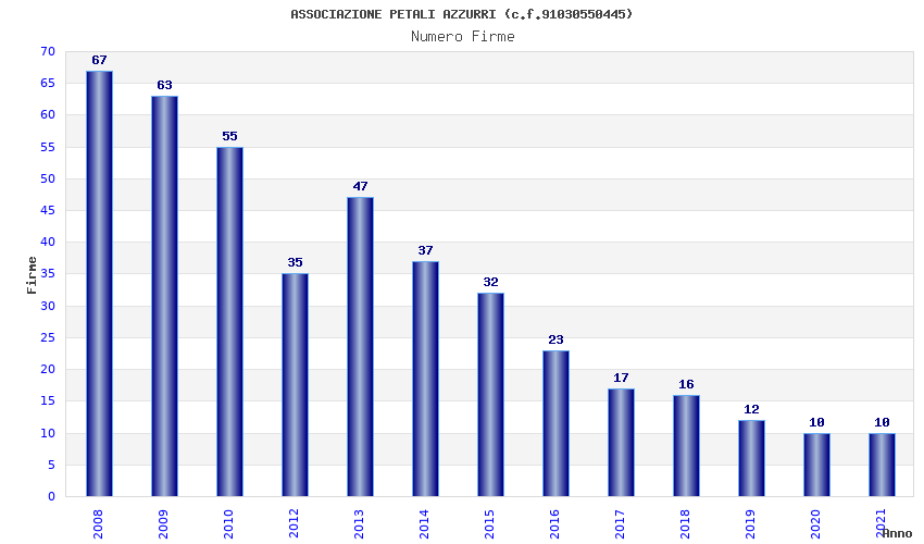 | Anno | Firme | Importi | Media | Naz. | Reg. | Prov. | Comu. |