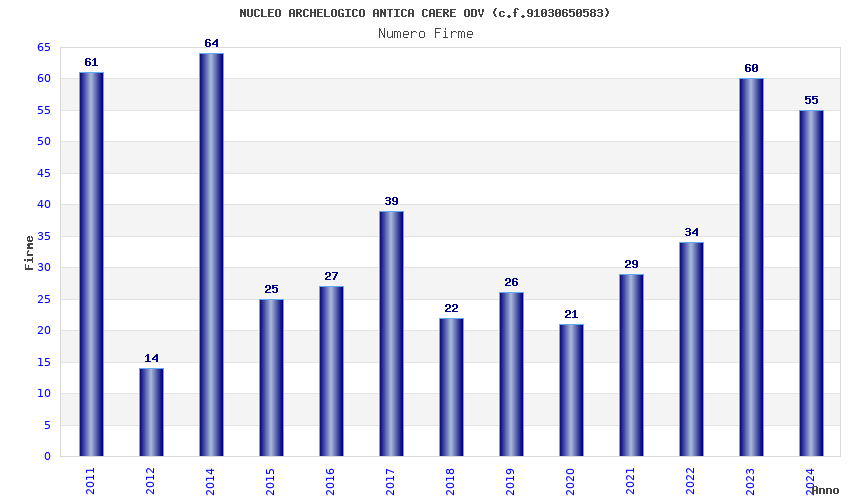 | Anno | Firme | Importi | Media | Naz. | Reg. | Prov. | Comu. |