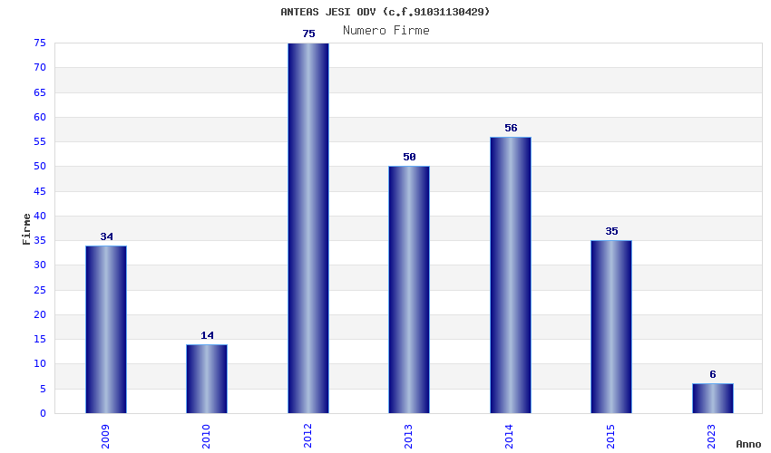 | Anno | Firme | Importi | Media | Naz. | Reg. | Prov. | Comu. |
