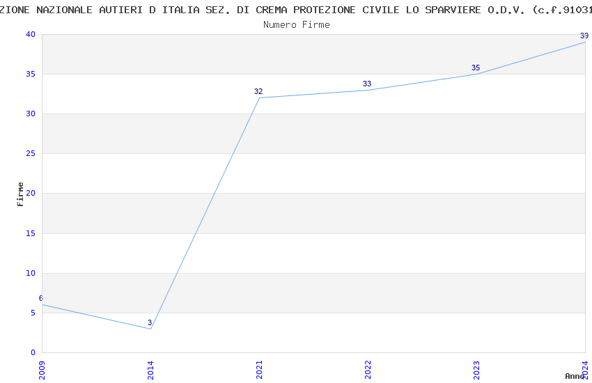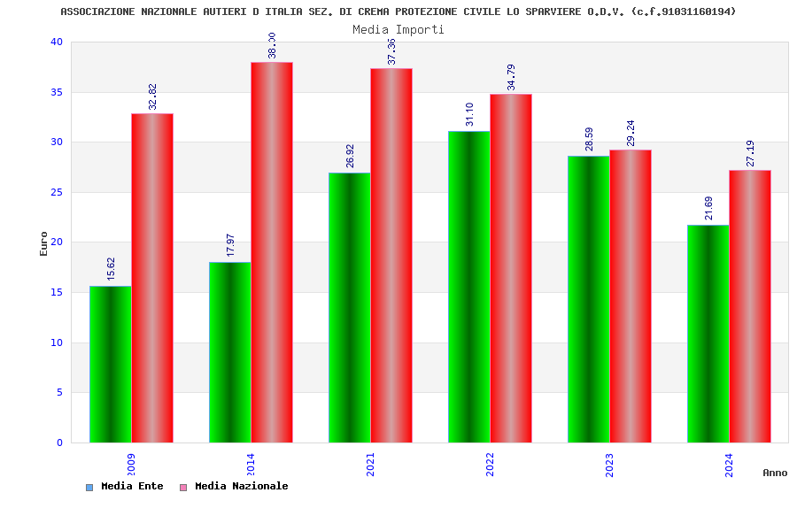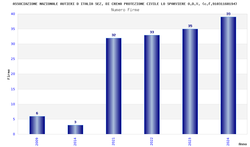 | Anno | Firme | Importi | Media | Naz. | Reg. | Prov. | Comu. |