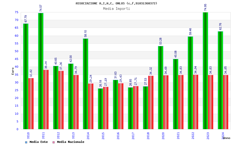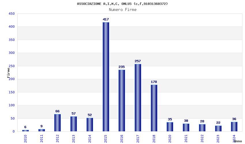 | Anno | Firme | Importi | Media | Naz. | Reg. | Prov. | Comu. |