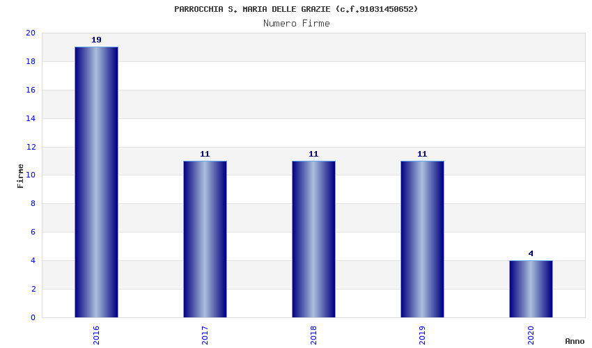 | Anno | Firme | Importi | Media | Naz. | Reg. | Prov. | Comu. |
