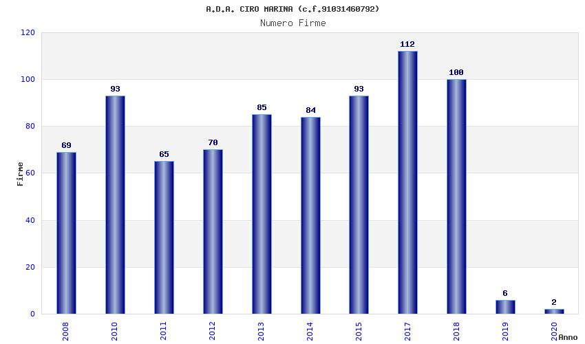 | Anno | Firme | Importi | Media | Naz. | Reg. | Prov. | Comu. |