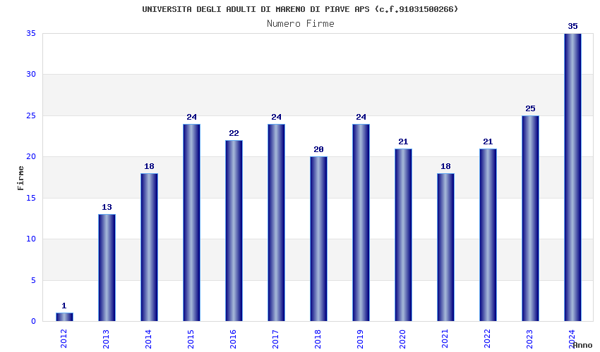 | Anno | Firme | Importi | Media | Naz. | Reg. | Prov. | Comu. |