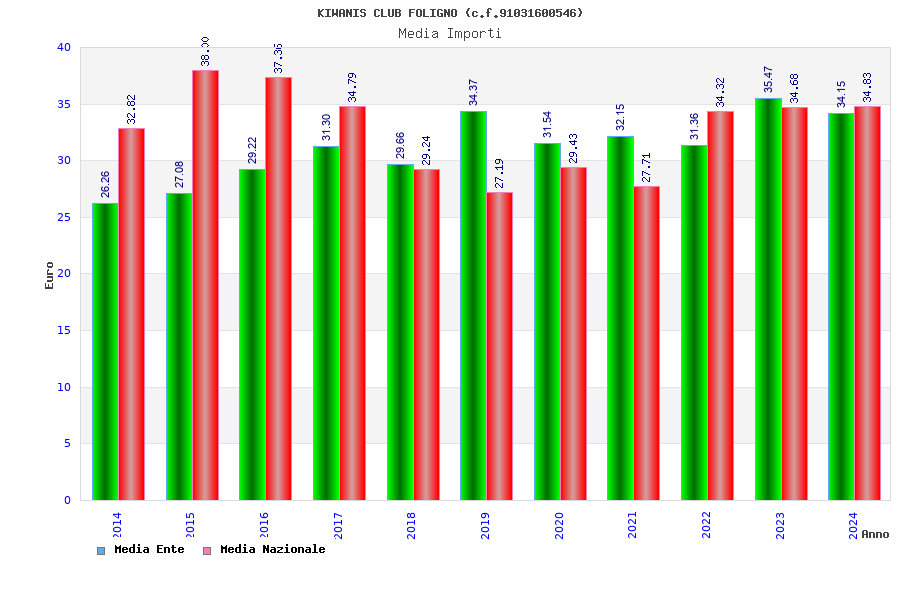 | Anno | Firme | Importi | Media | Naz. | Reg. | Prov. | Comu. |