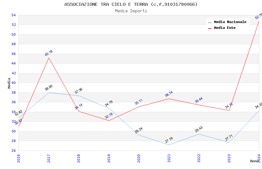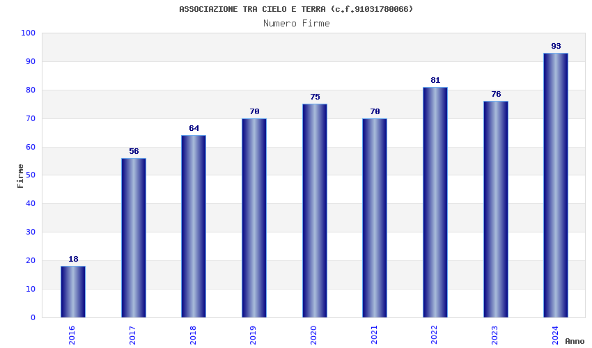 | Anno | Firme | Importi | Media | Naz. | Reg. | Prov. | Comu. |