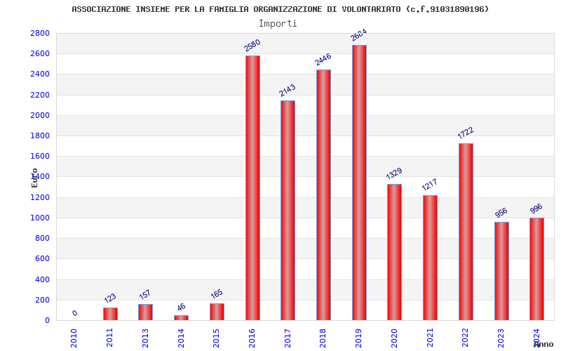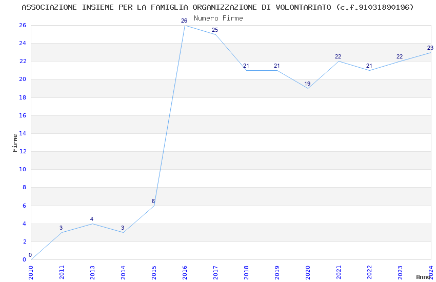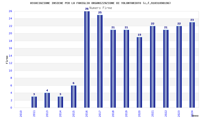 | Anno | Firme | Importi | Media | Naz. | Reg. | Prov. | Comu. |