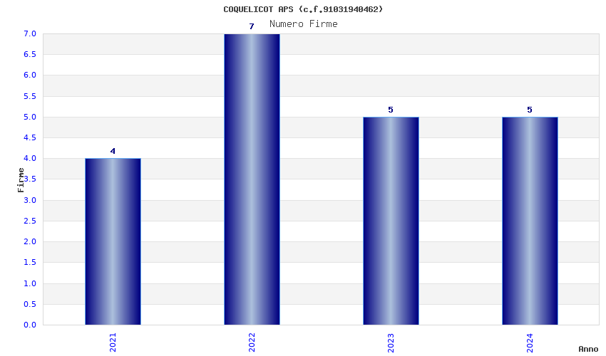 | Anno | Firme | Importi | Media | Naz. | Reg. | Prov. | Comu. |