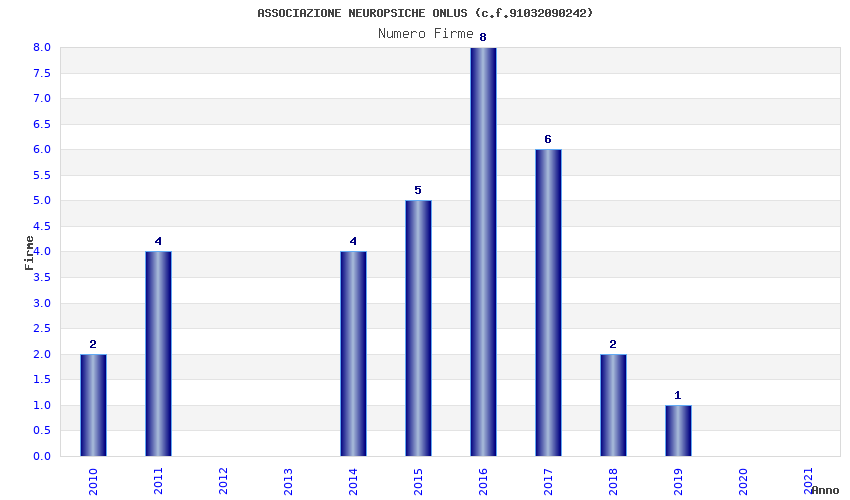 | Anno | Firme | Importi | Media | Naz. | Reg. | Prov. | Comu. |