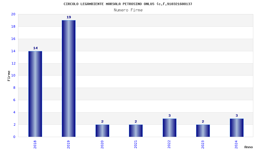 | Anno | Firme | Importi | Media | Naz. | Reg. | Prov. | Comu. |