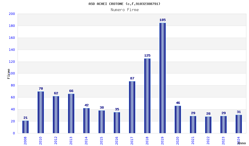 Anno Firme Importi Media Naz. Reg. Prov. Comu.