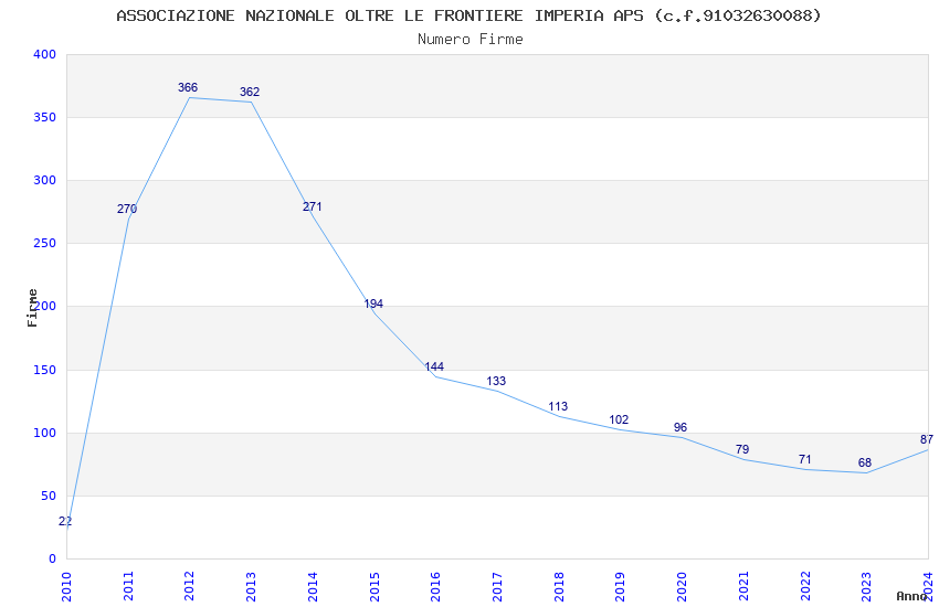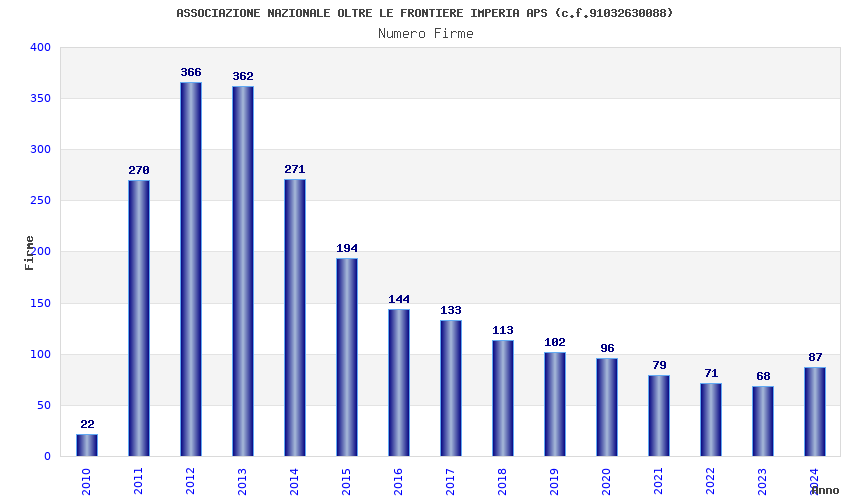 | Anno | Firme | Importi | Media | Naz. | Reg. | Prov. | Comu. |
