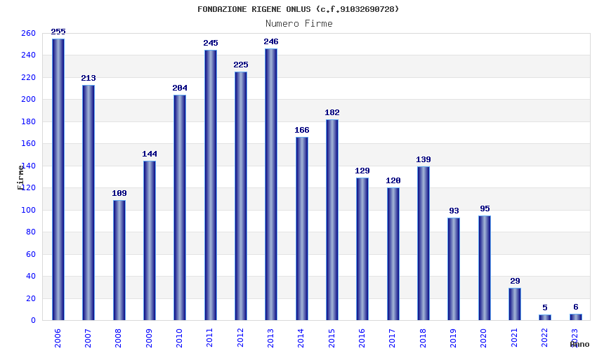 Anno Firme Importi Media Naz. Reg. Prov. Comu.