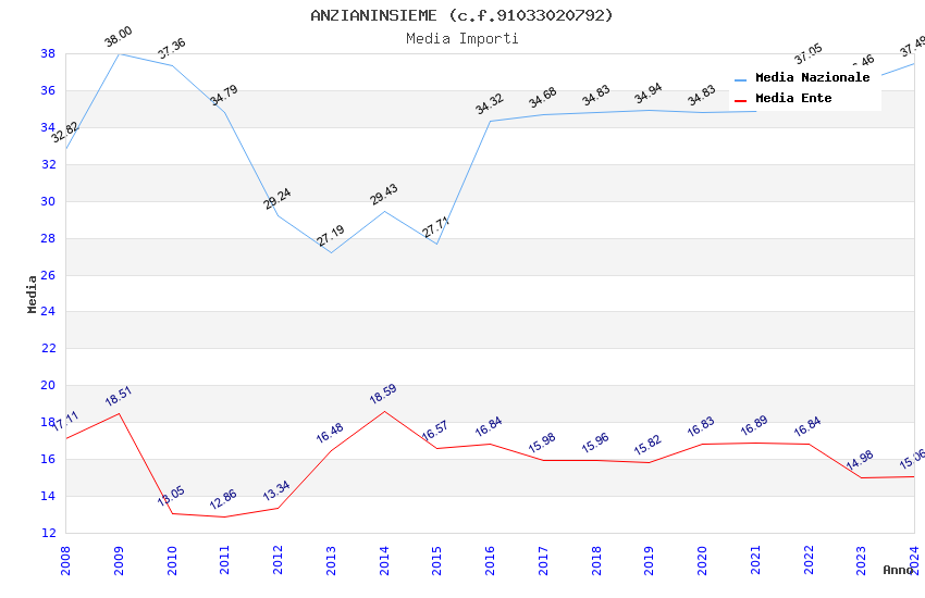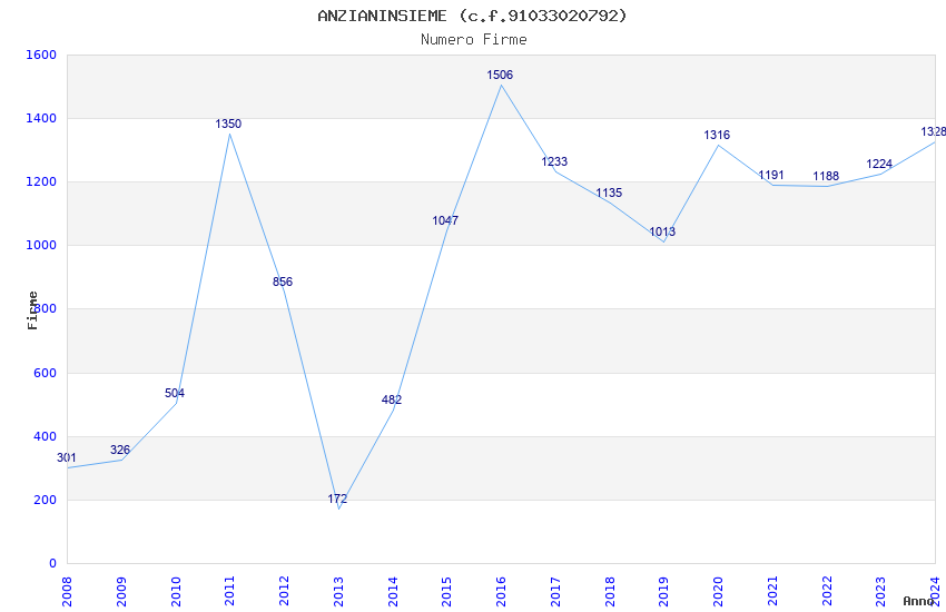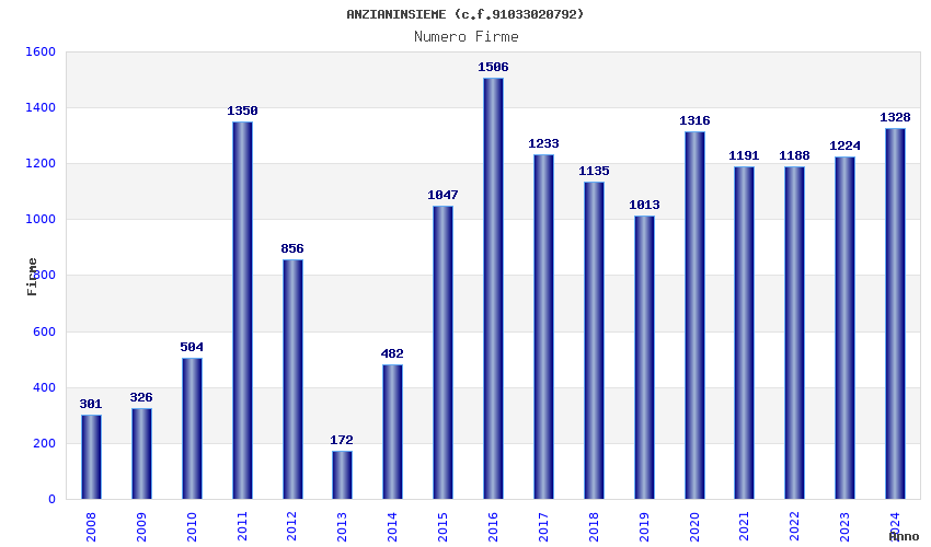 | Anno | Firme | Importi | Media | Naz. | Reg. | Prov. | Comu. |