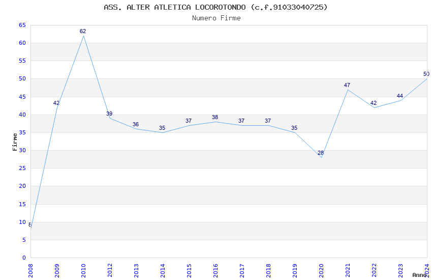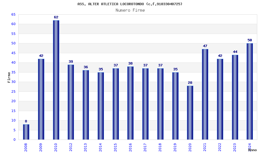 | 2010 | 62 | 1.630,77 | 26,30 | 18.609 | 790 | 267 | 4 |