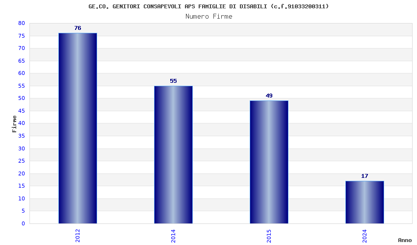 | Anno | Firme | Importi | Media | Naz. | Reg. | Prov. | Comu. |