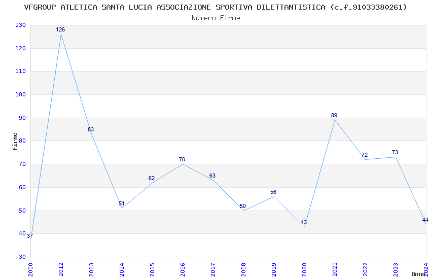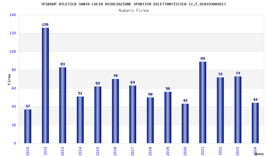 | 2023 | 73 | 2.749,87 | 37,67 | 18.580 | 1.735 | 305 | 2 |