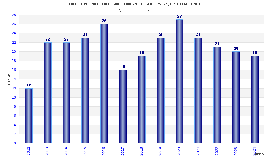 | Anno | Firme | Importi | Media | Naz. | Reg. | Prov. | Comu. |