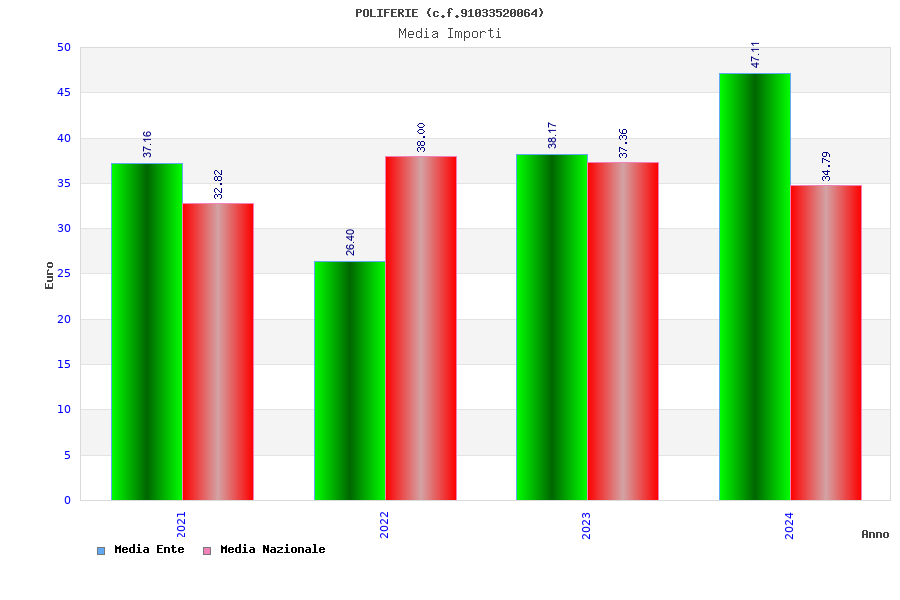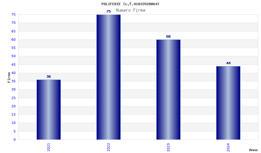 | Anno | Firme | Importi | Media | Naz. | Reg. | Prov. | Comu. |