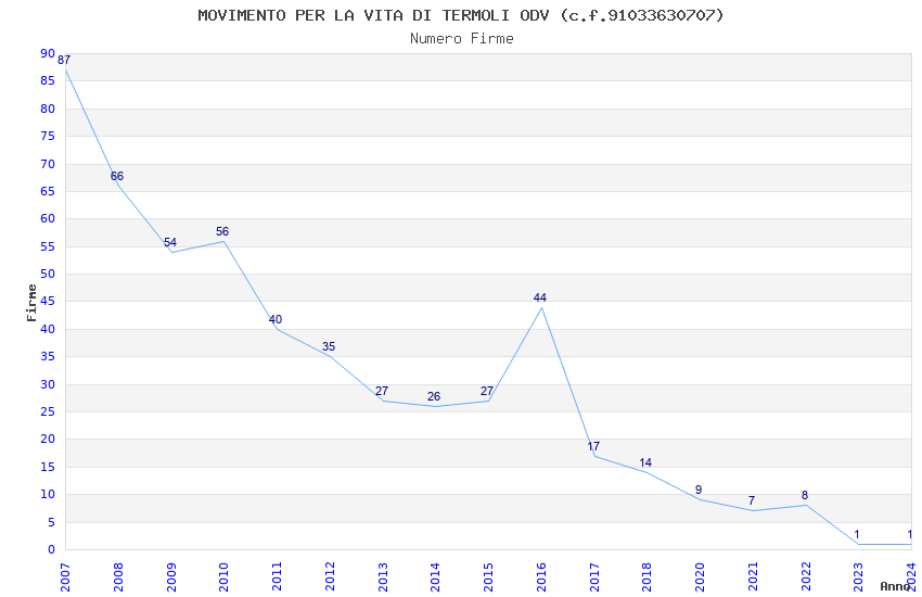 | 2007 | 87 | 2.641,95 | 30,37 | 11.256 | 44 | 35 | 6 |