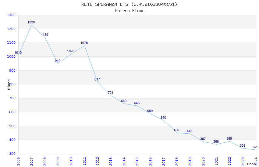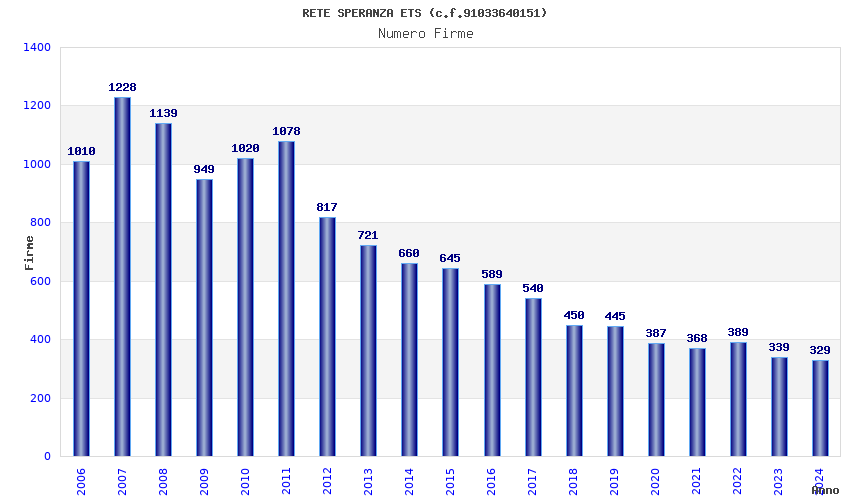 | Anno | Firme | Importi | Media | Naz. | Reg. | Prov. | Comu. |