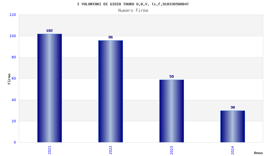 | Anno | Firme | Importi | Media | Naz. | Reg. | Prov. | Comu. |