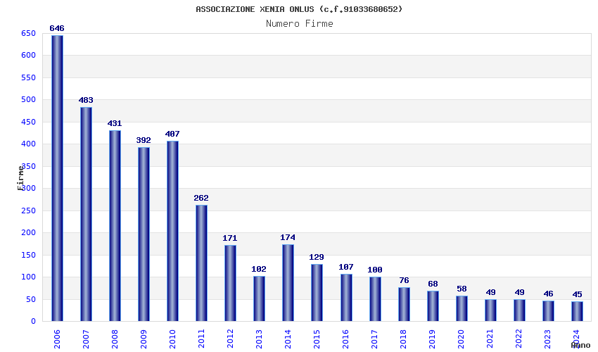 | 2024 | 45 | 2.080,62 | 46,24 | 23.344 | 1.499 | 327 | 13 |