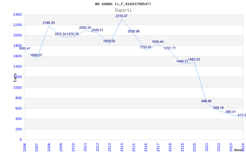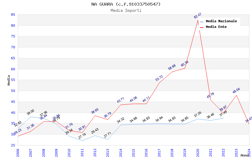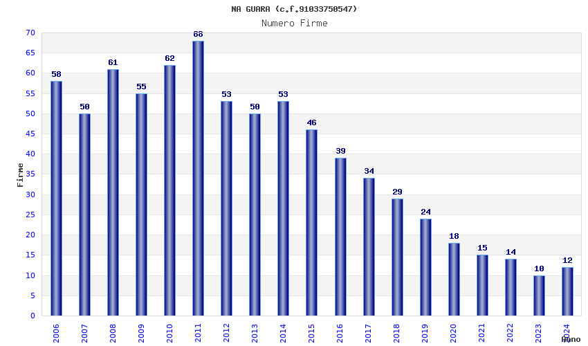 | Anno | Firme | Importi | Media | Naz. | Reg. | Prov. | Comu. |