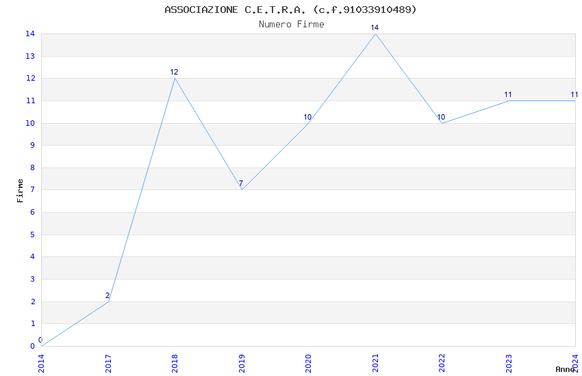 | 2021 | 14 | 238,70 | 17,05 | 56.970 | 3.669 | 1.138 | 12 |
