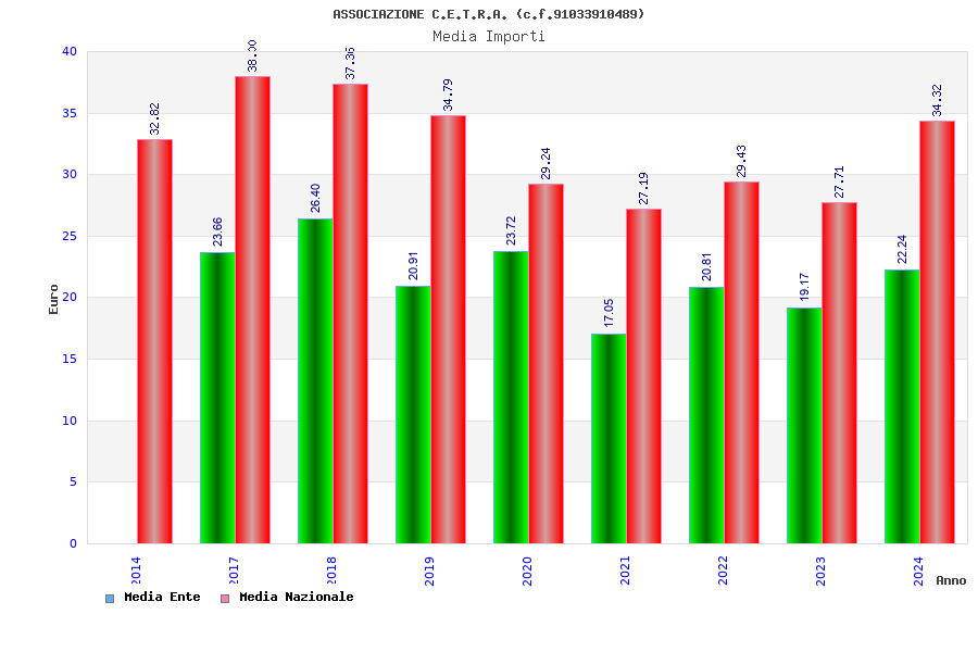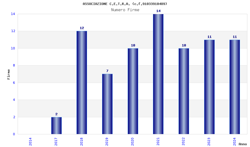 | Anno | Firme | Importi | Media | Naz. | Reg. | Prov. | Comu. |