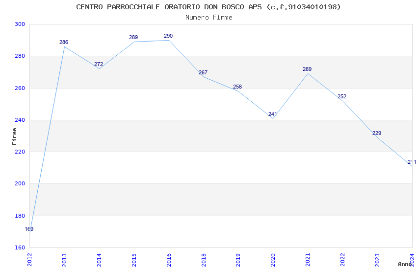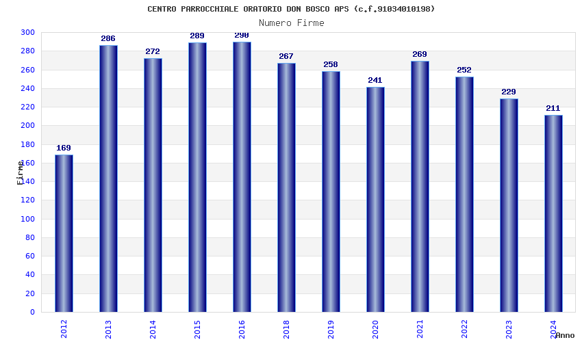 | Anno | Firme | Importi | Media | Naz. | Reg. | Prov. | Comu. |