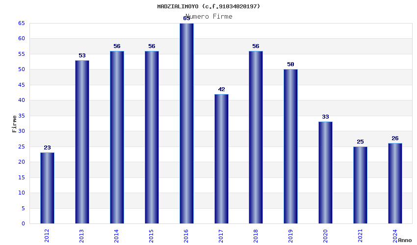 | Anno | Firme | Importi | Media | Naz. | Reg. | Prov. | Comu. |