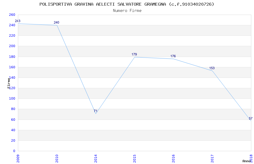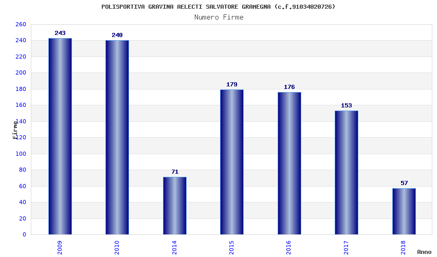 | Anno | Firme | Importi | Media | Naz. | Reg. | Prov. | Comu. |