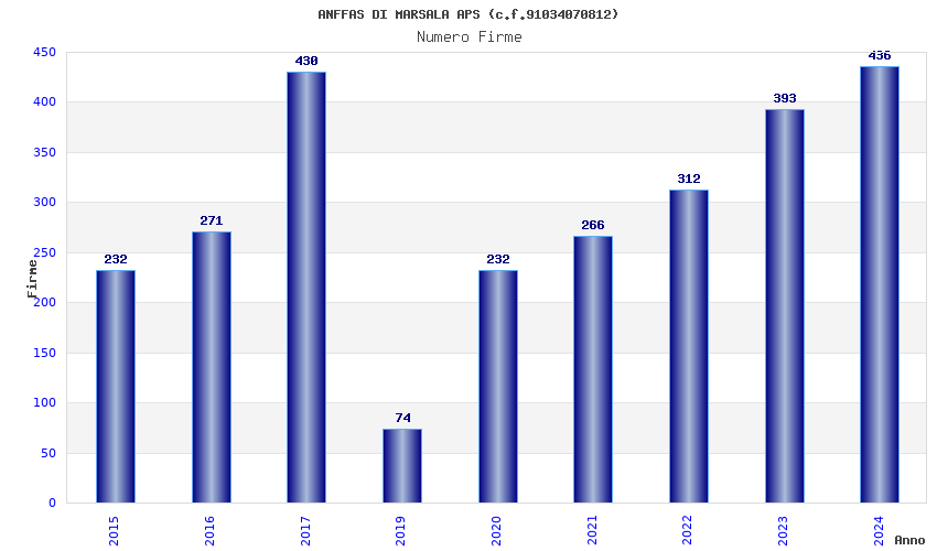 | Anno | Firme | Importi | Media | Naz. | Reg. | Prov. | Comu. |