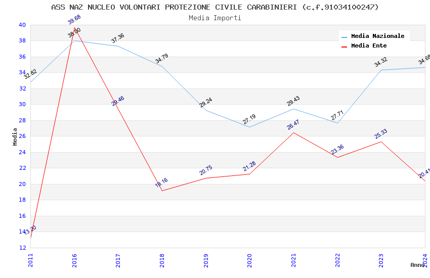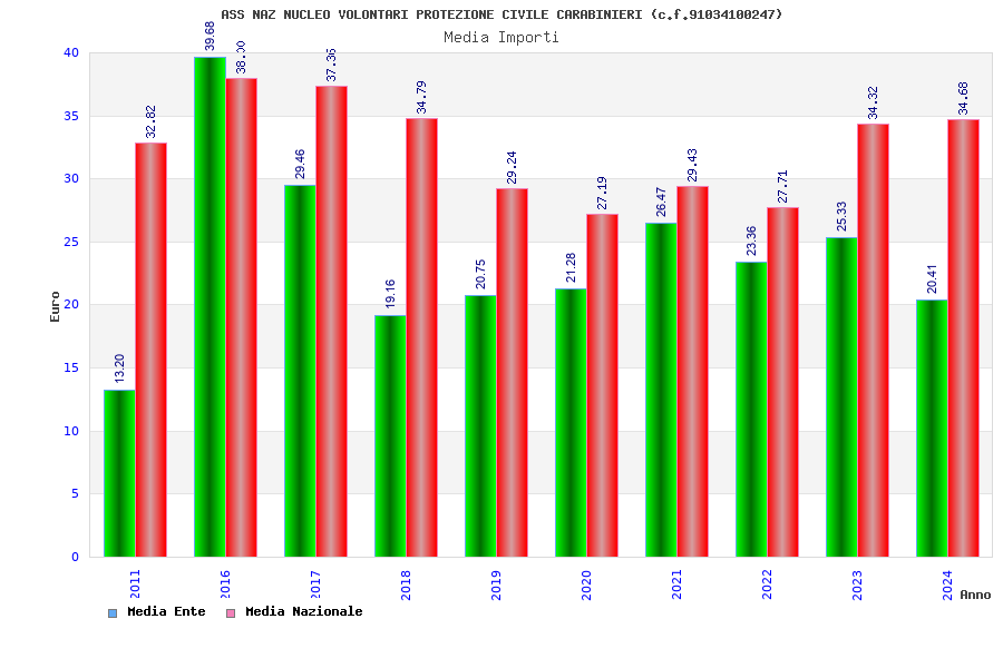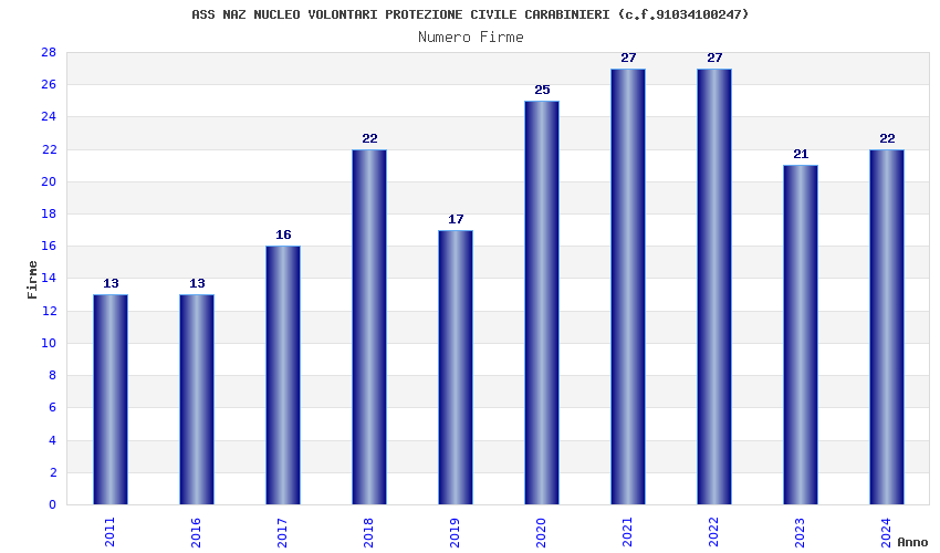 | Anno | Firme | Importi | Media | Naz. | Reg. | Prov. | Comu. |