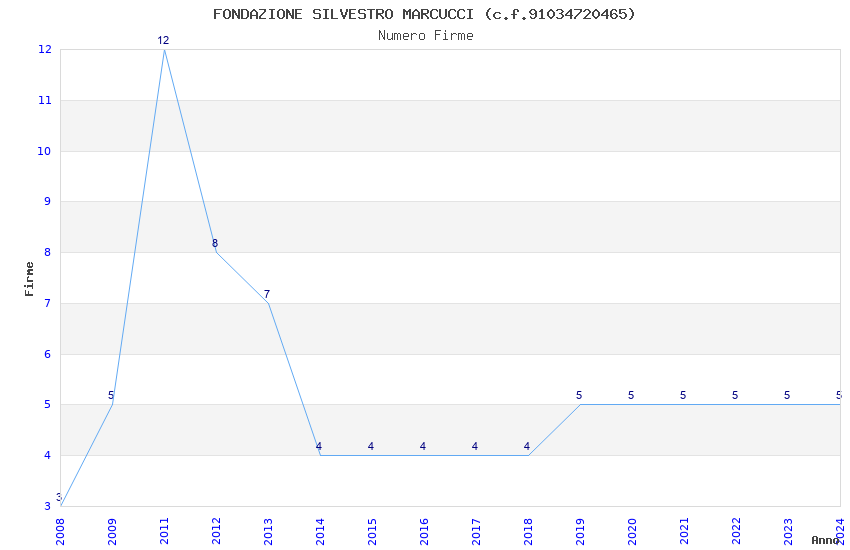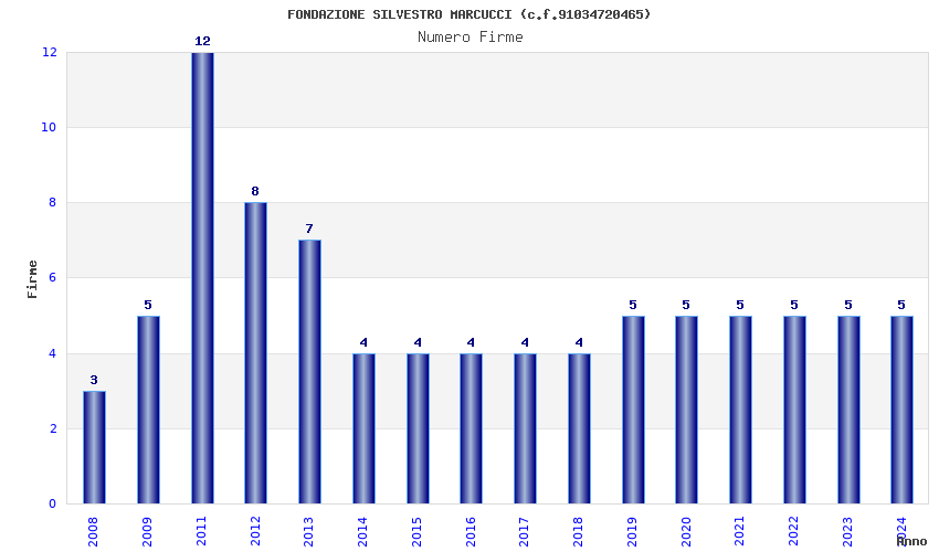 | Anno | Firme | Importi | Media | Naz. | Reg. | Prov. | Comu. |