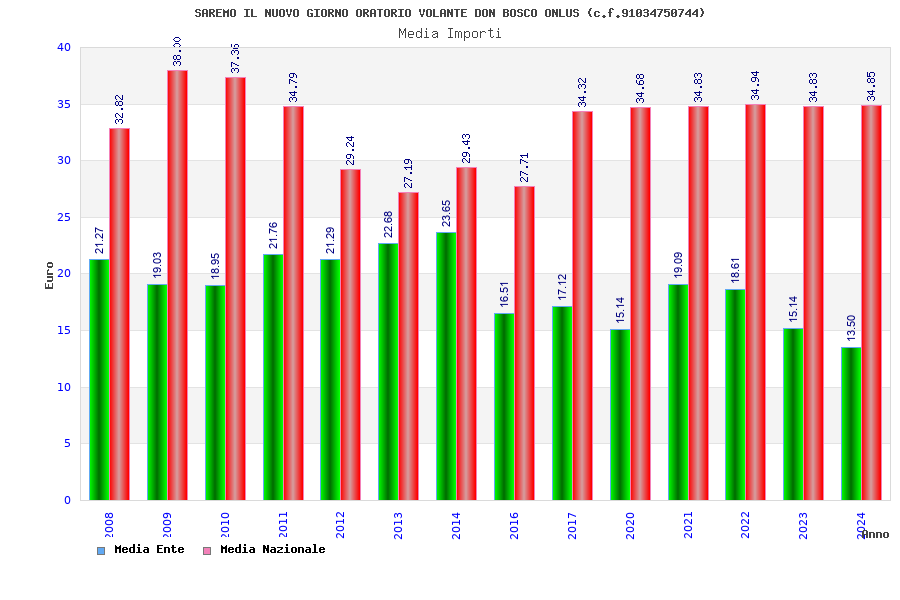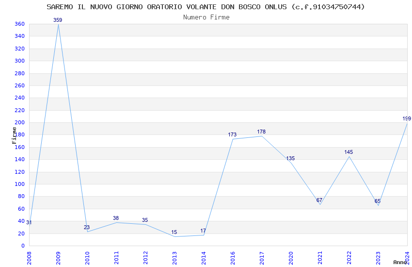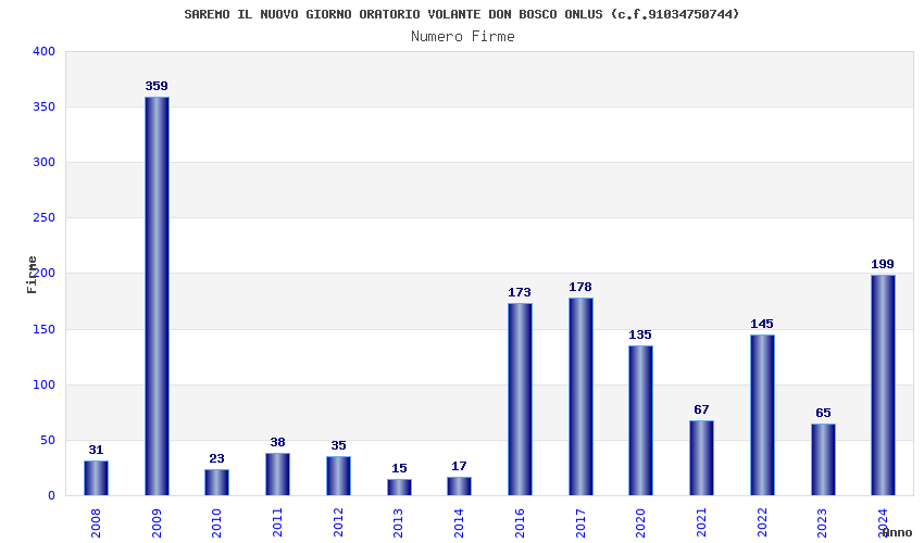 | Anno | Firme | Importi | Media | Naz. | Reg. | Prov. | Comu. |